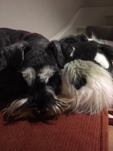Last year Santa brought both of my daughters Schnauzer slippers and yesterday my youngest, Lucy, found them and decided to wear them.